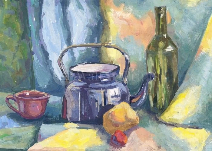 Still Life With Teapot And Bottle